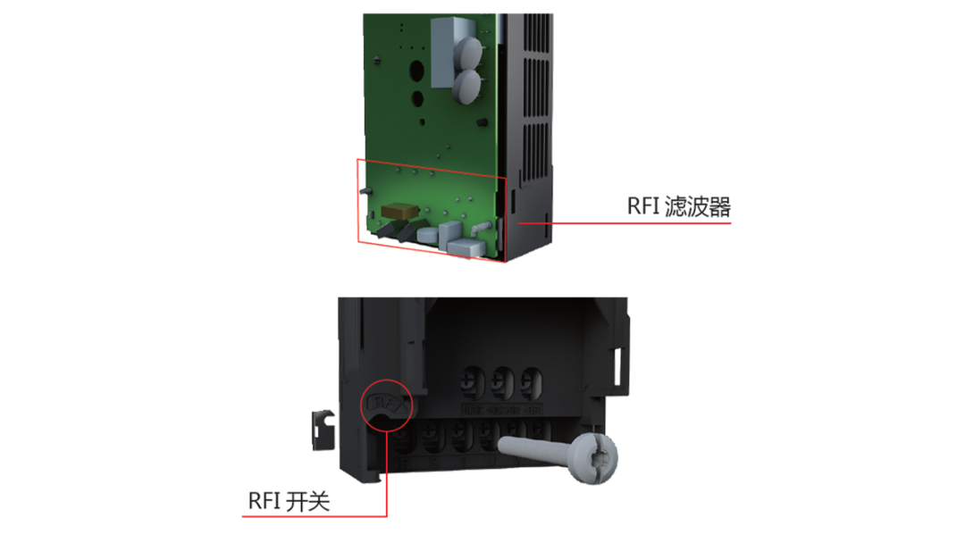 全系內(nèi)置C3等級的RFI濾波器(可通過RFI開關(guān)選擇是否連接),可以減小電磁干擾,使變頻器EMC性能達(dá)到二類環(huán)境(工業(yè)環(huán)境)不受限制使用。