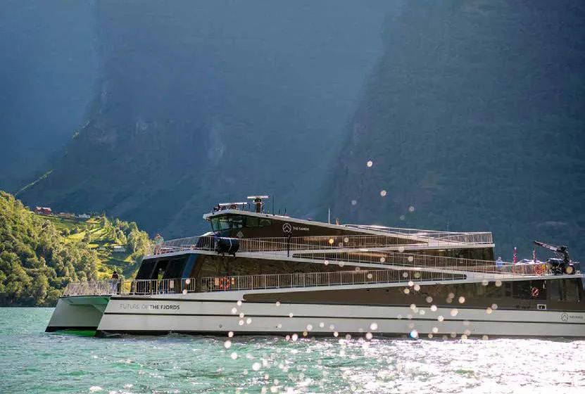 “峽灣未來”號(hào)作為世界上第一艘全電動(dòng)碳纖維船舶,代表了對(duì)環(huán)境負(fù)責(zé)的客運(yùn)船舶的最新標(biāo)準(zhǔn)。這款電動(dòng)雙體船的開發(fā)與公司對(duì)于最大程度減少對(duì)挪威峽灣的環(huán)境影響的目標(biāo)一致,同時(shí)將最大限度地提高乘客的自然美景體驗(yàn),該航線位于原始的Nærøyfjord內(nèi),屬于聯(lián)合國(guó)教科文組織世界遺產(chǎn)公園。