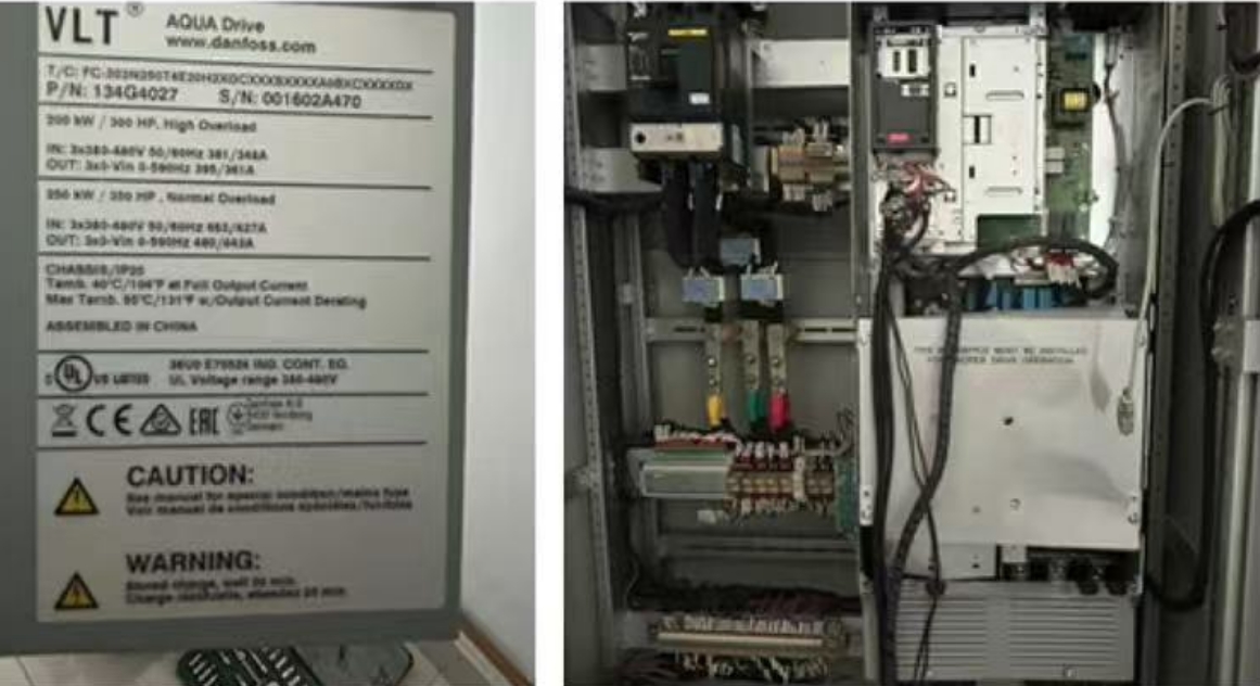 丹佛斯FC202是丹佛斯AQUA專用變頻器,是一款專用于水處理領(lǐng)域的變頻器,具備諸多適配水行業(yè)工況的特性與優(yōu)勢。由于用戶現(xiàn)場使用的是 200KW 潛水泵,且無法獲取電機(jī)參數(shù),所以上海津信維修人員首先對變頻器參數(shù)進(jìn)行了調(diào)整,增大了電機(jī)額定電流。重新帶電機(jī)運行后,變頻器能夠上升至 45Hz,但隨后再次報出電流超限故障,并且電機(jī)發(fā)出異常聲響,呈現(xiàn)出明顯的缺相特征。?