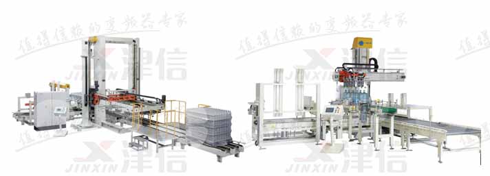 本項目設(shè)備名稱為碼垛機和卸垛機,碼垛機是將已裝入容器的紙箱,按一定排列碼放在托盤、棧板(木質(zhì)、塑膠)上,進(jìn)行自動堆碼,可堆碼多層,然后推出,卸垛機的工作原理基本和碼垛機一樣,只不過工序不一樣;丹佛斯變頻器在本項目中主要負(fù)責(zé)所有電機的控制,包括輸送線控制、定位控制等。
